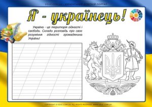 Дидактичний матеріал “Я – українка!”/”Я – українець!” для молодших школярів до Дня Гідності і Свободи. Картки містять розмальовки і поле для запису дитиною свого розуміння гідності громадянина України.