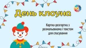 Картки-розгортки з розмальовками і текстом для списування до Дня клоуна |