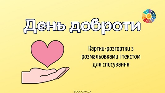 Картки-розгортки з розмальовками і текстами для списування до Всесвітнього дня доброти.