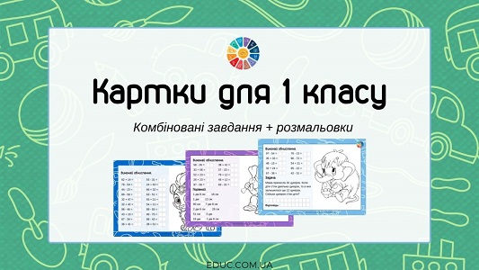 Головна » Завдання для дітей » Завдання для 1 класу » Картки для 1 класу: комбіновані завдання + розмальовки
