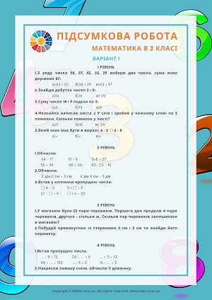 Діагностична (контрольна) робота з математика 2 клас в 2 варіантах. Запропонована Educ.com.ua робота включає завданнями різного типу 4 рівнів складності.