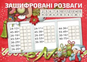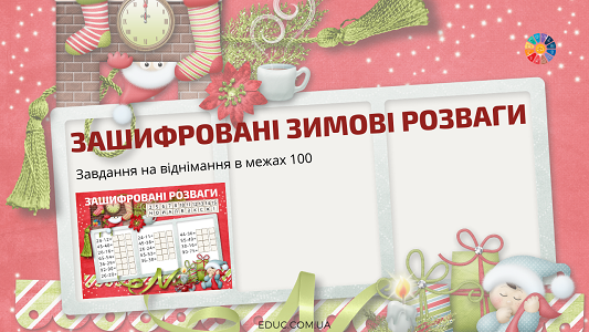 Зашифровані зимові розваги: картки з завданнями на віднімання в межах 100 для 2-3 класу з визначенням зашифрованого за цифрами зимового слова.
