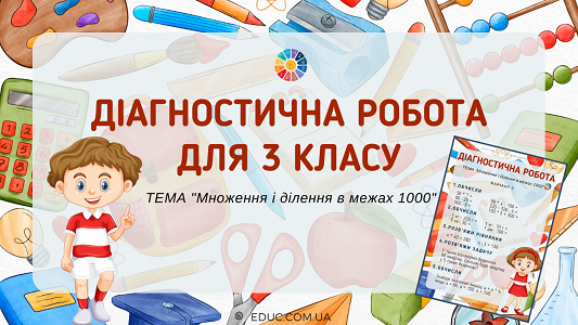 Головна » Завдання для дітей » Завдання для 3 класу » Діагностична робота «Множення і ділення в межах 1000»