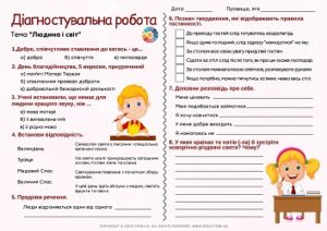 Діагностувальна робота №5 “Людина і світ” для 4 класу за підручником Н.Бібік, Г.Боднарчук. Завдання розроблені на основі тем “У кожному куточку світу свої традиції і звичаї”, “Календар народних свят українців”, “Правила гостинності”, “Поспішайте робити добро”, “Неповторність кожної людини”.